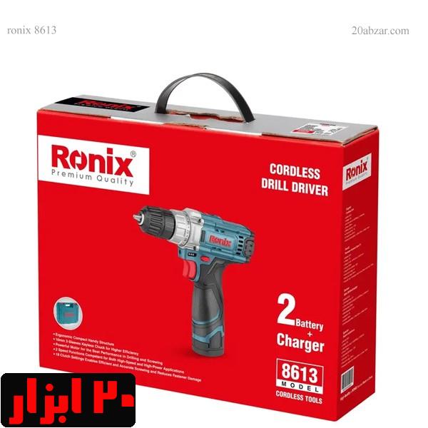 دریل شارژی ۱۲ ولت ۱۰ میلیمتری دو باتری رونیکس مدل ۸۶۱۳